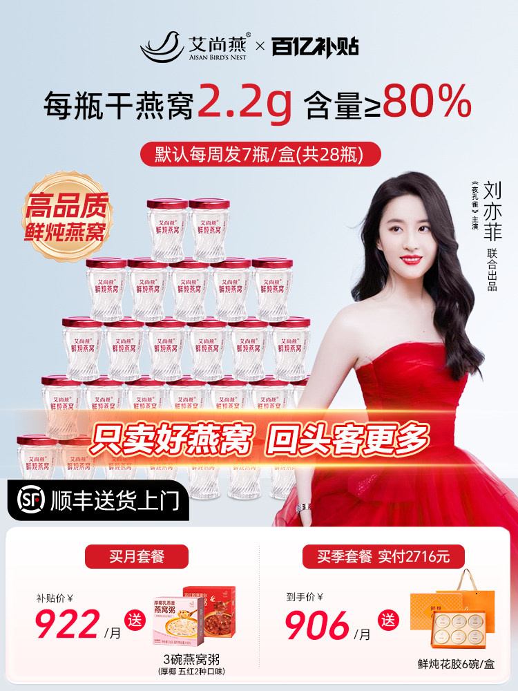 艾尚燕高含量鲜炖燕窝即食45g28瓶浓度80%正品官方旗舰店孕妇无糖