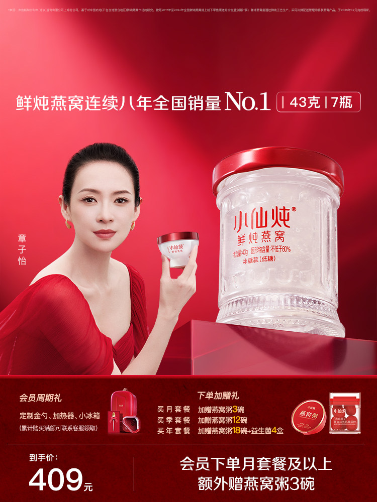 小仙炖鲜炖燕窝小鲜瓶43g*7瓶周套餐冰糖/无糖孕妇即食滋补营养品