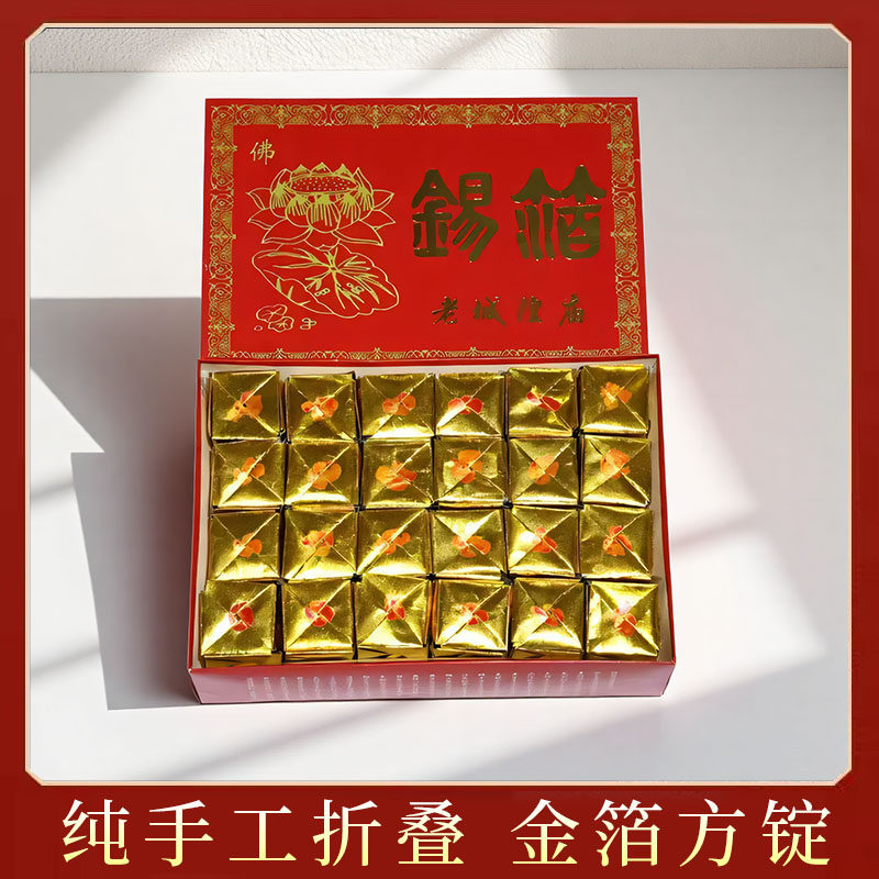 26X18CM真锡箔金锭方锭祭祖上坟烧纸用品寒衣节拜祭祖先纸1盒48个
