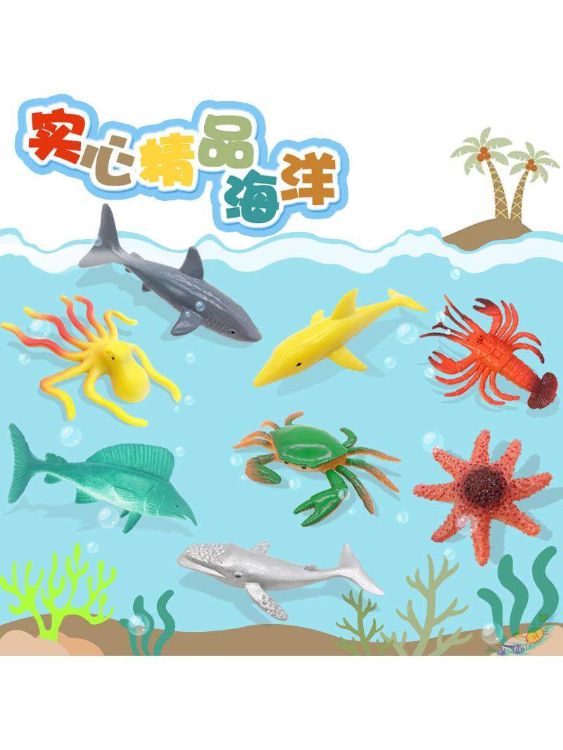 仿真软胶静态海洋动物模型儿童认知玩具河豚海豚鲨鱼螃蟹龙虾章鱼