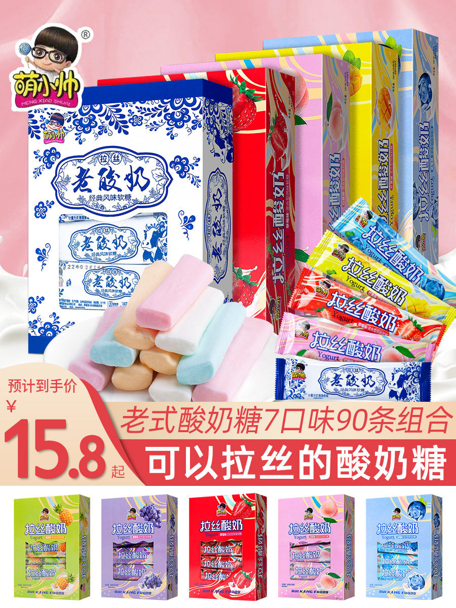 萌小帅老酸奶拉丝糖软糖奶糖8090后怀旧糖果过年货分享网红小零食