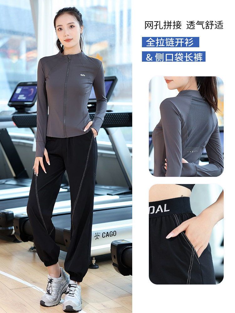 2025春季新款跑步速干健身服女套装晨跑运动服跳绳训练服瑜伽外套
