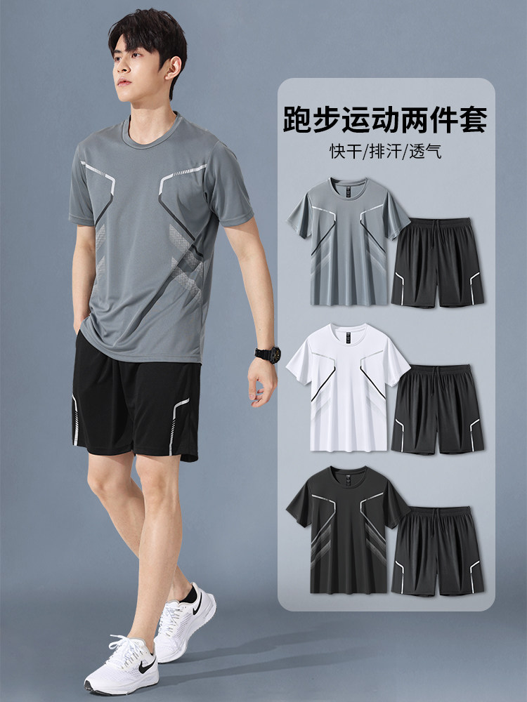 运动服套装男跑步短袖夏季速干衣篮球服休闲羽毛健身训练衣服短裤