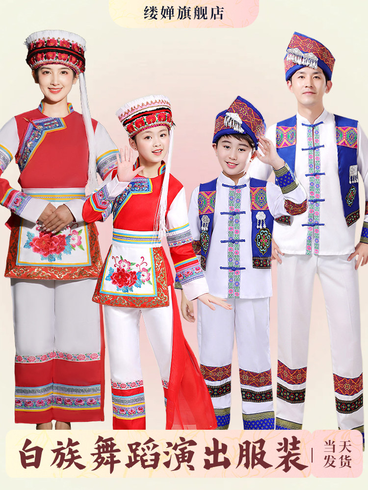 大理白族女舞蹈演出服装成人男云南少数民族白族传统刺绣服饰儿童