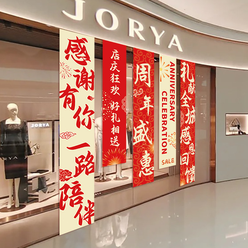 周年庆活动装饰品公司庆典店铺促销场景氛围布置挂布条幅吊旗背景