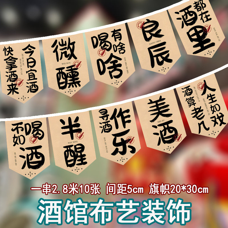露营风书法小酒馆氛围墙壁挂旗挂布火锅网红餐厅装饰喝酒文化中国国潮背景布串旗装饰挂布旗帜挂旗集市文字文