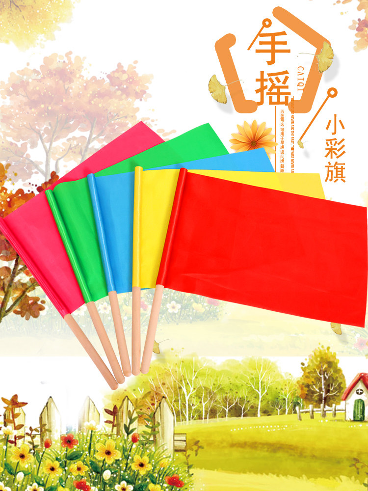 幼儿园课间操早操道具儿童小彩旗舞蹈表演红旗运动会活动手摇旗帜批发五彩小旗带杆红黄蓝粉绿