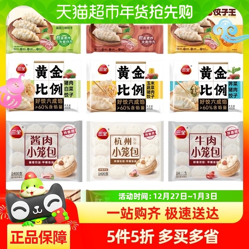 三全水饺饺子王黄金比例蒸煎饺小笼包烧麦大包子多系列多口味任选