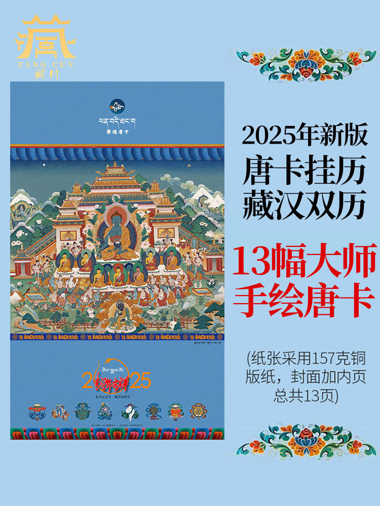 藏村2025年唐卡挂历蛇年藏历藏汉公历农历月历家用装饰画日历挂画