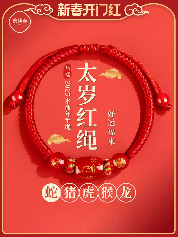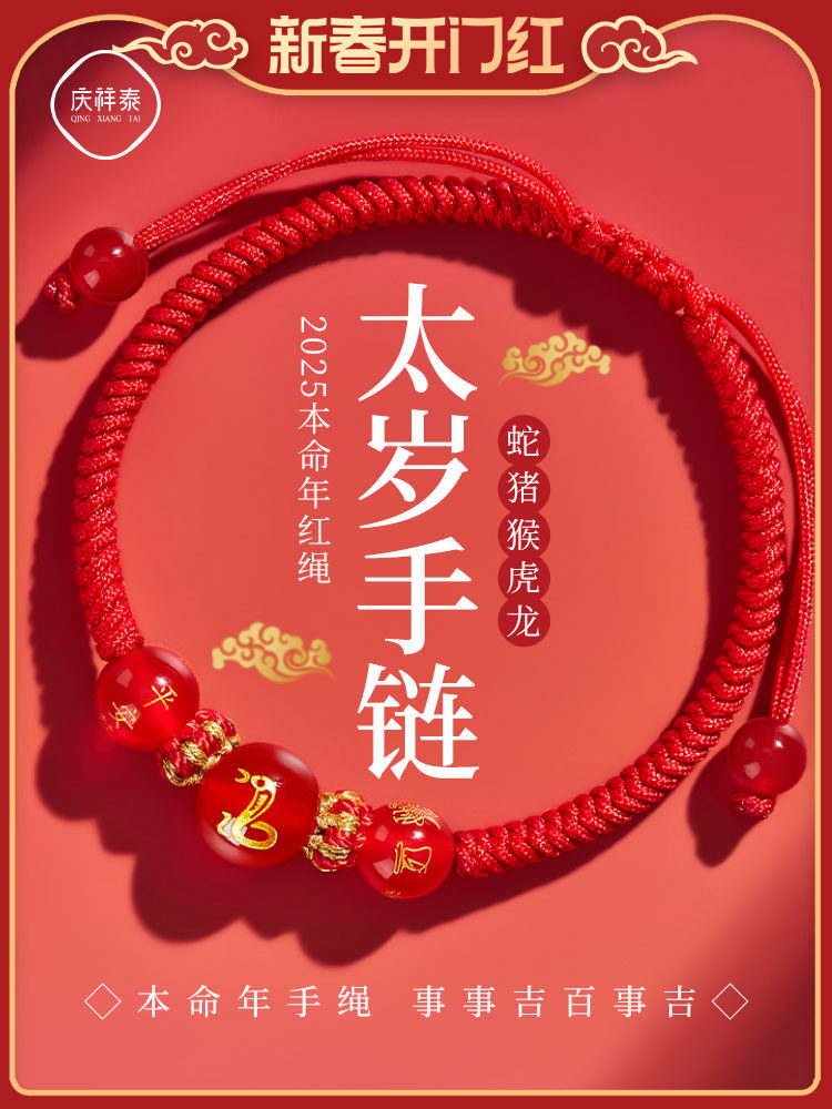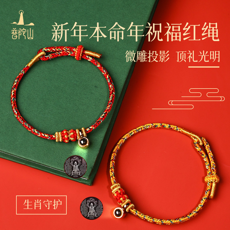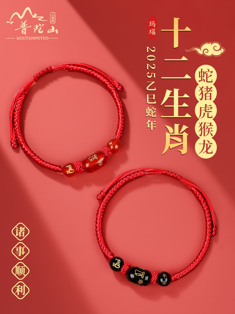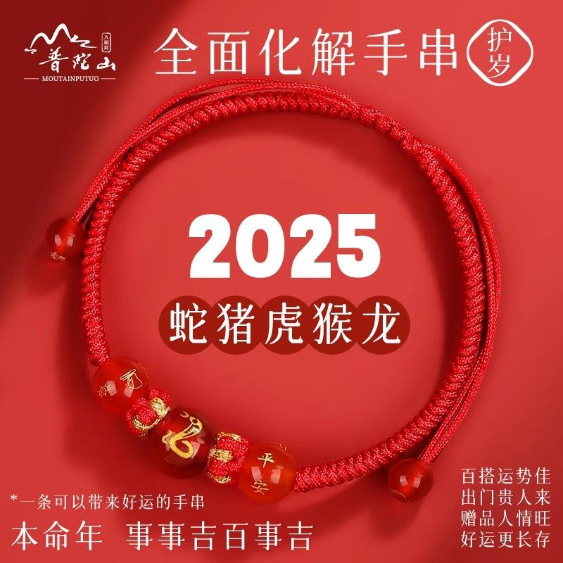 普陀山2025年蛇年本命年太岁红绳手链女绳属蛇猪虎猴护身符手绳男