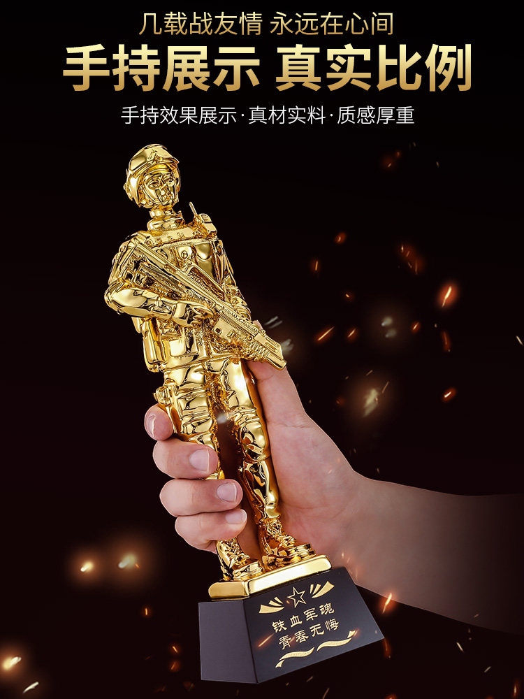 退伍军人纪念品送战友兄弟八一礼物金人模型手办老兵退役留念摆件