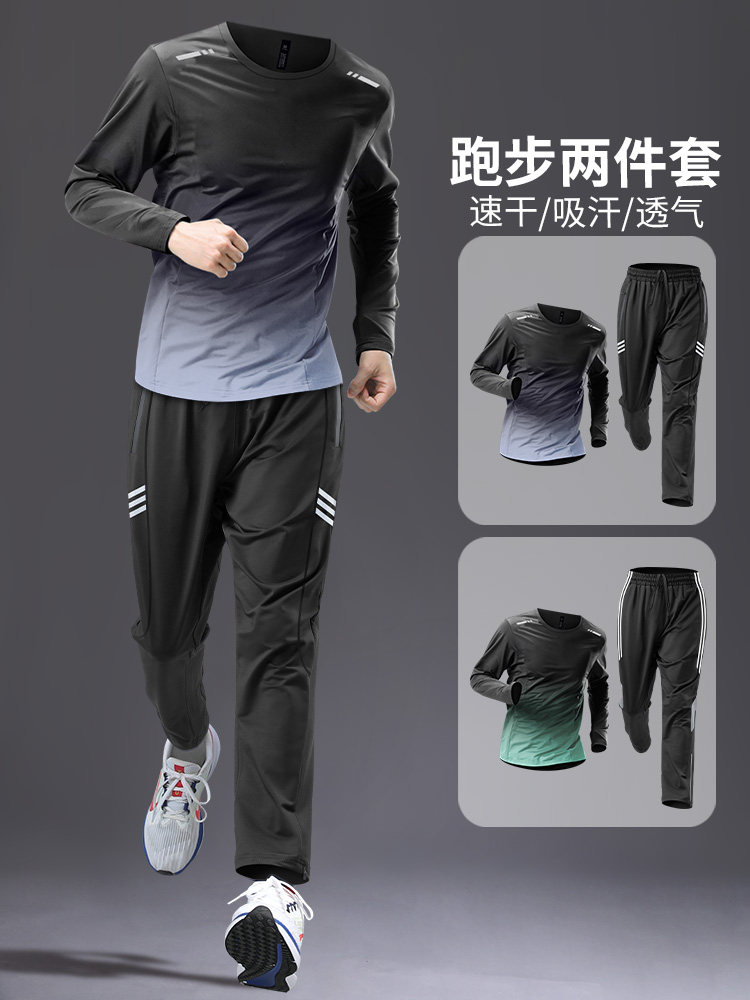 健身房运动套装男秋季宽松跑步训练服速干长袖长裤晨跑篮球服新款