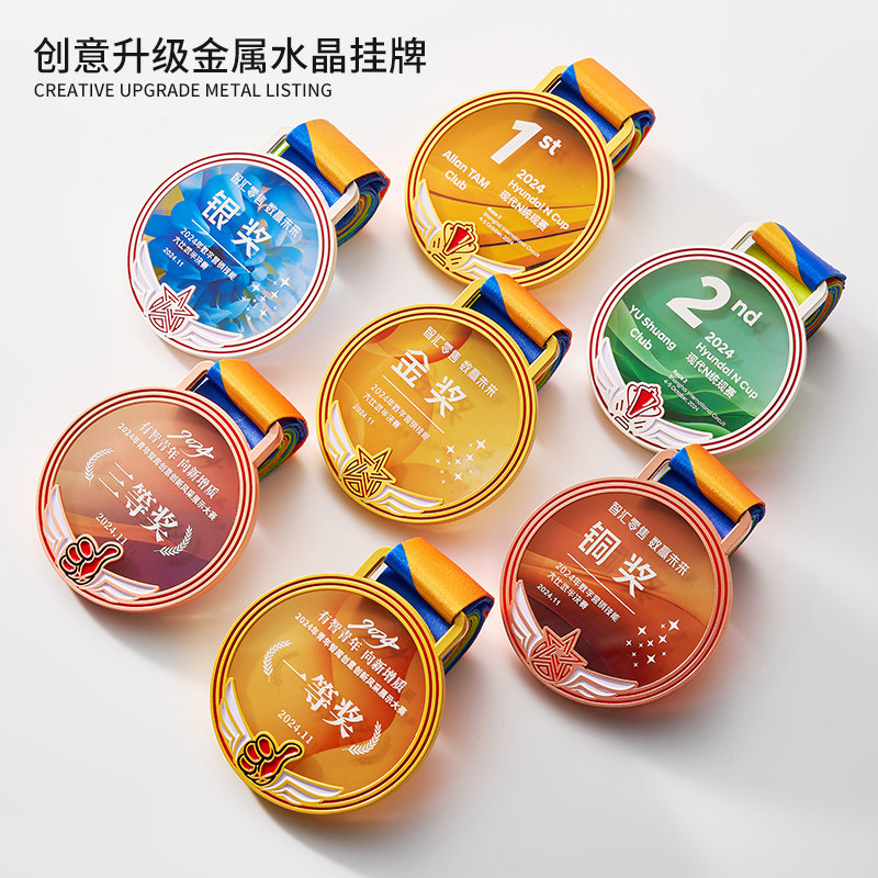 新款金属水晶奖牌挂牌运动会篮球足球羽毛球乒乓球马拉松比赛奖牌