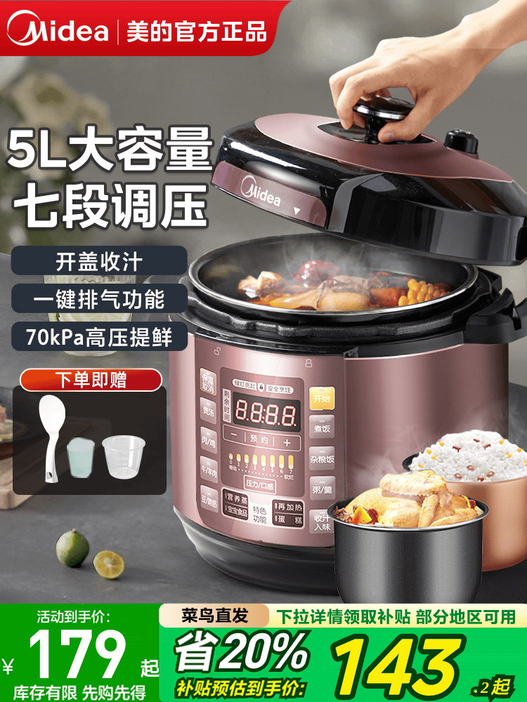 美的电压力锅家用双胆高压锅5升多功能饭煲全自动智能6人官方正品