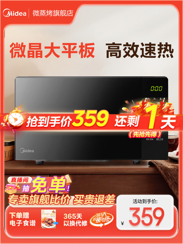 美的微波炉M22J家用新款台式平板20L易清洁内胆正品小型速热除菌