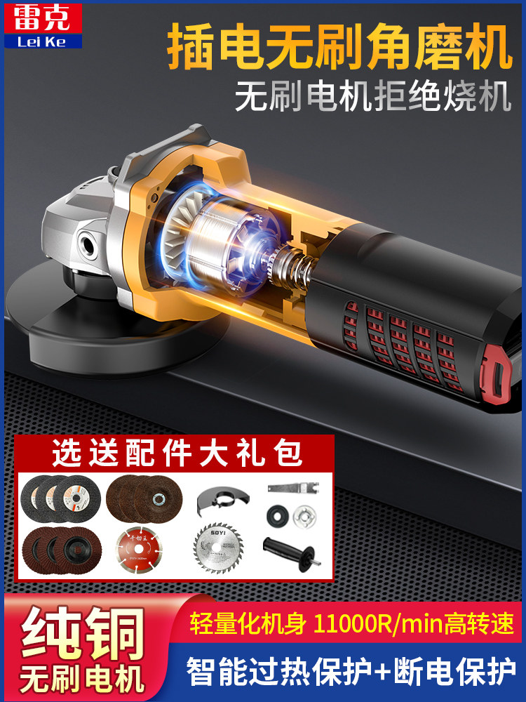 雷克无刷角磨机多功能手砂轮手磨抛光打磨机磨光机切割机家用