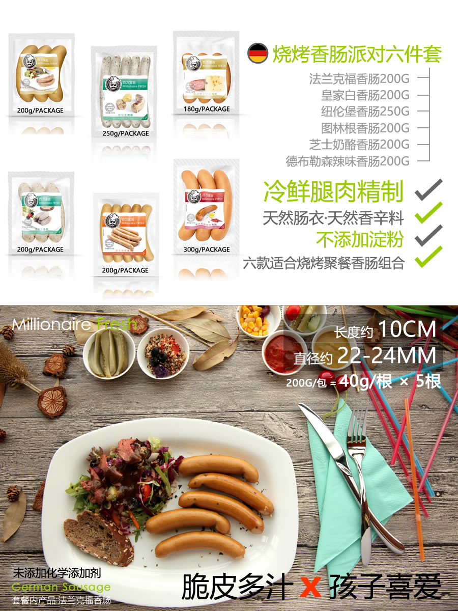 百万富翁德国香肠烧烤六件套德式烘焙图林根肉肠黑胡椒烤肠脆皮肠