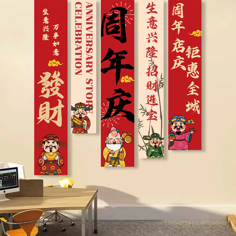 周年庆活动装饰挂布商场店铺氛围布置背景墙吊旗周年庆典旗帜布