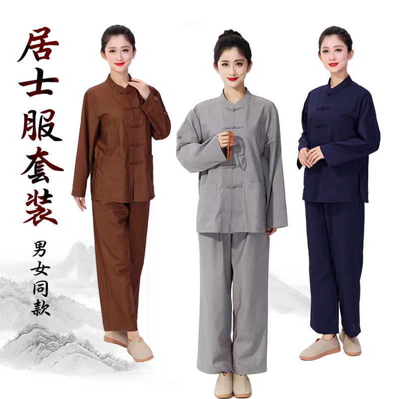 居士服男女禅修佛系棉僧服套装布扣僧衣和尚尼姑冬季加厚打坐衣服