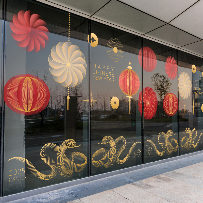 蛇年简约装饰春节玻璃落地橱窗花静电贴纸写字楼幕墙4S店窗贴新年