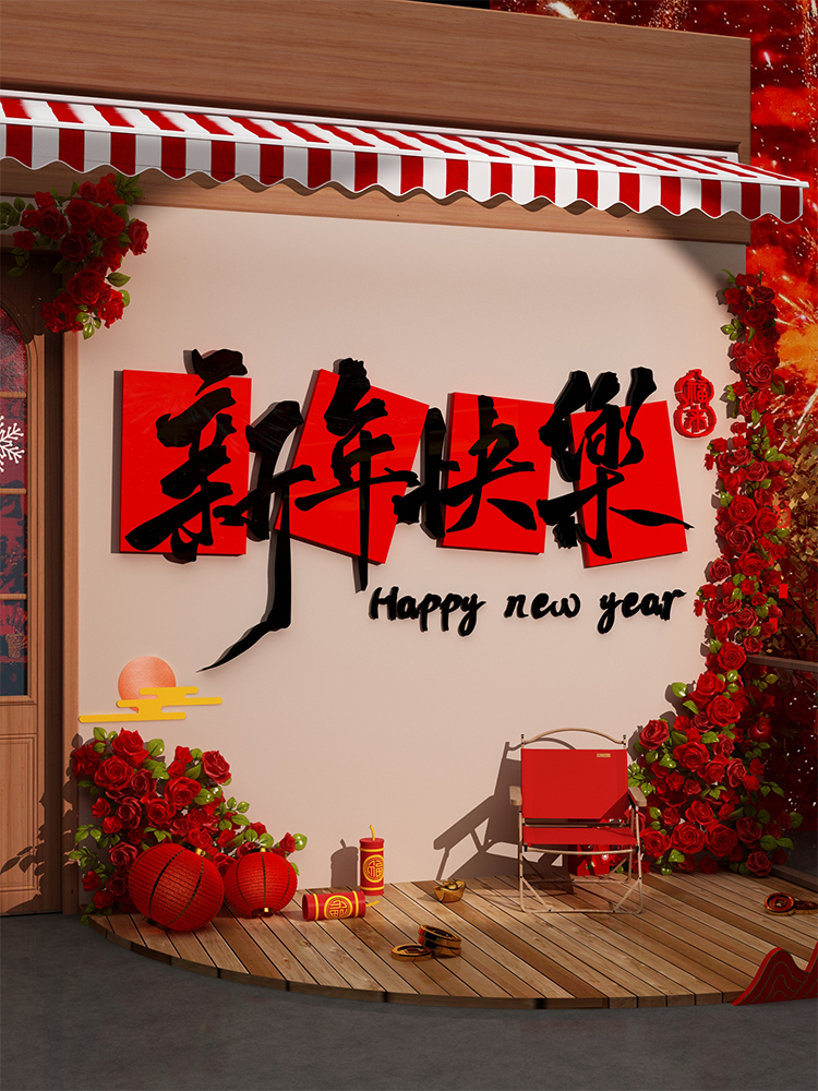 2025过贺蛇新年元旦装饰品场景布置春节气氛围网红打卡墙面拍照区