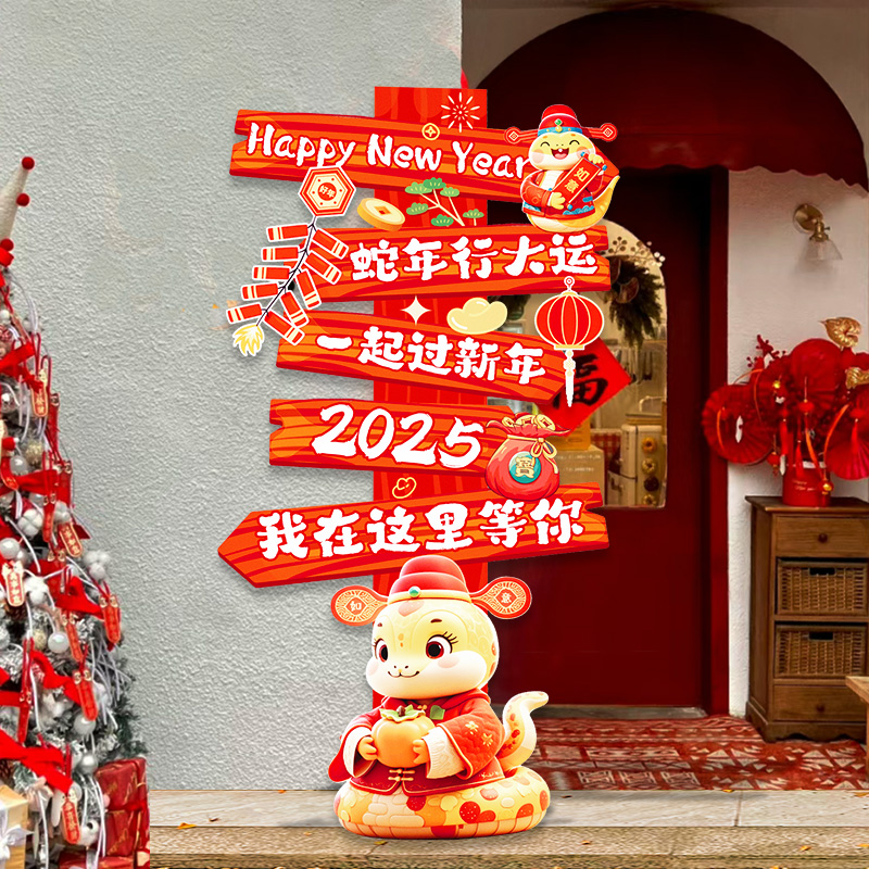 2025迎新年装饰品氛围布置场景过蛇贺年春节门店铺立柱指示牌kt板