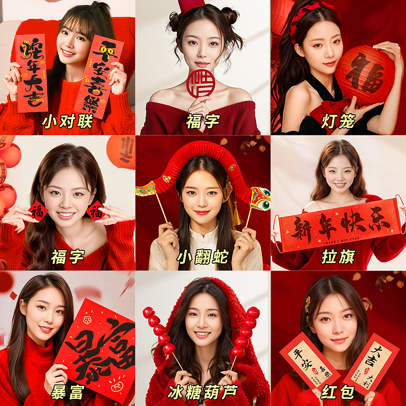 2025春节蛇年新年拍照道具装饰品氛围布置对联过拜年视频跨年拍摄