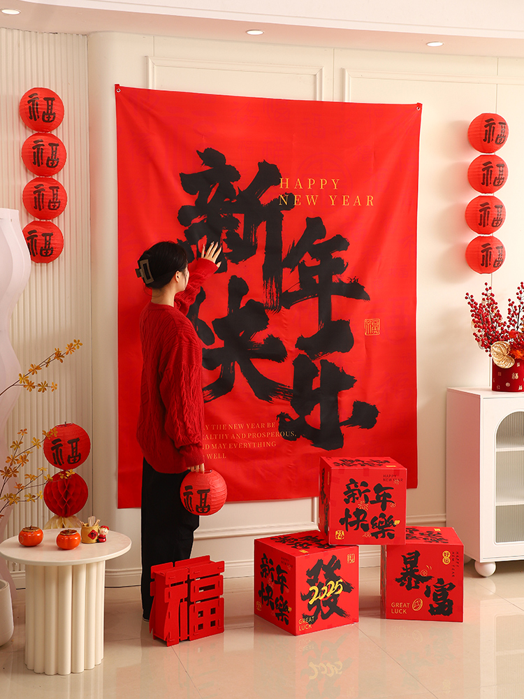 2025新年装饰挂布网红打卡拍照背景墙蛇年春节民宿小院幼儿园布置