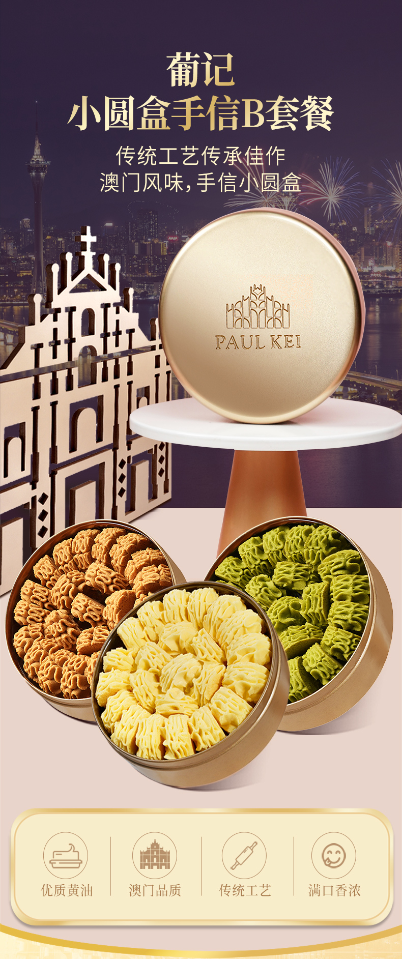 澳门葡记小金盒手信*3盒 黄油小花曲奇抹茶咖啡味饼干糕点心送礼