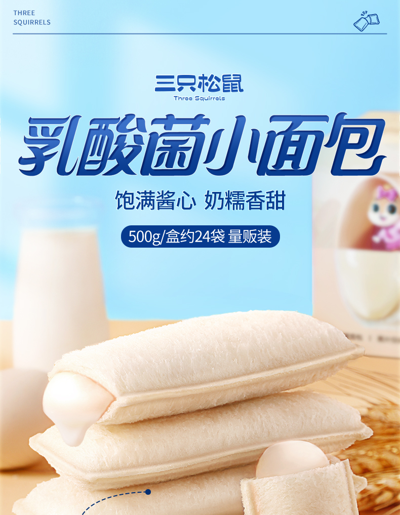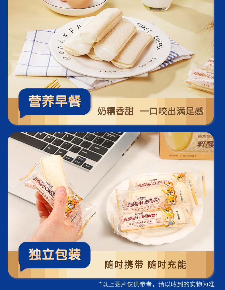 三只松鼠_乳酸菌小伴侣500g 早餐小口袋营养面包糕点点心整箱