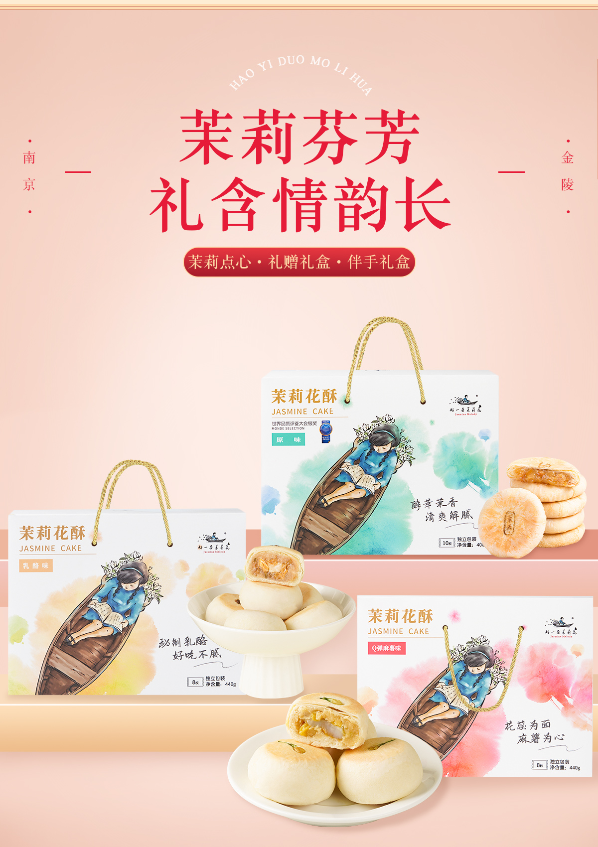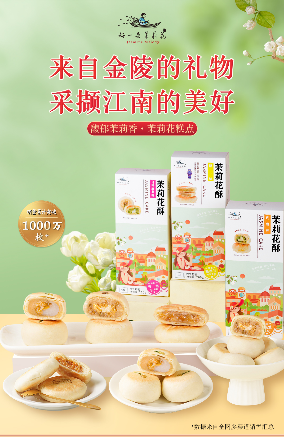 好一朵茉莉花鲜花饼礼盒南京特产中式糕点茉莉花饼特色零食点心