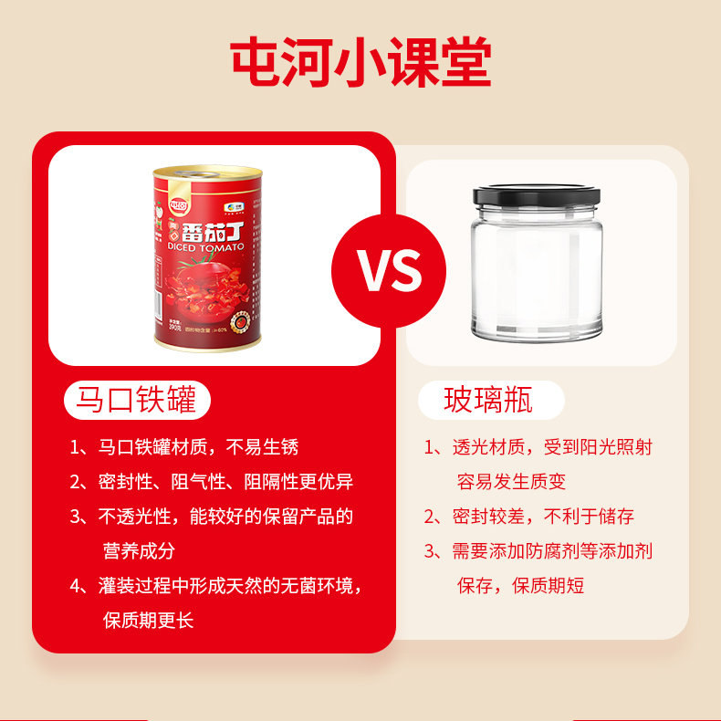 中粮屯河番茄丁罐头新鲜去皮西红柿块无添加剂预制菜390g*6罐