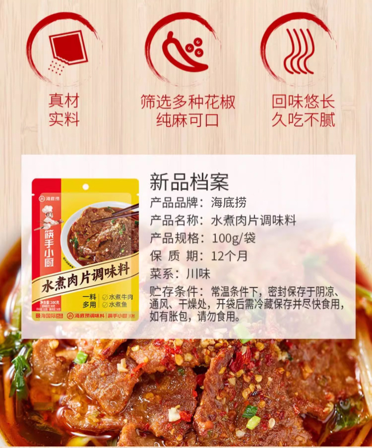 海底捞水煮肉片调味料四川麻辣冒菜毛血旺底料预制专用调料包商用