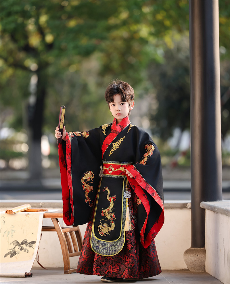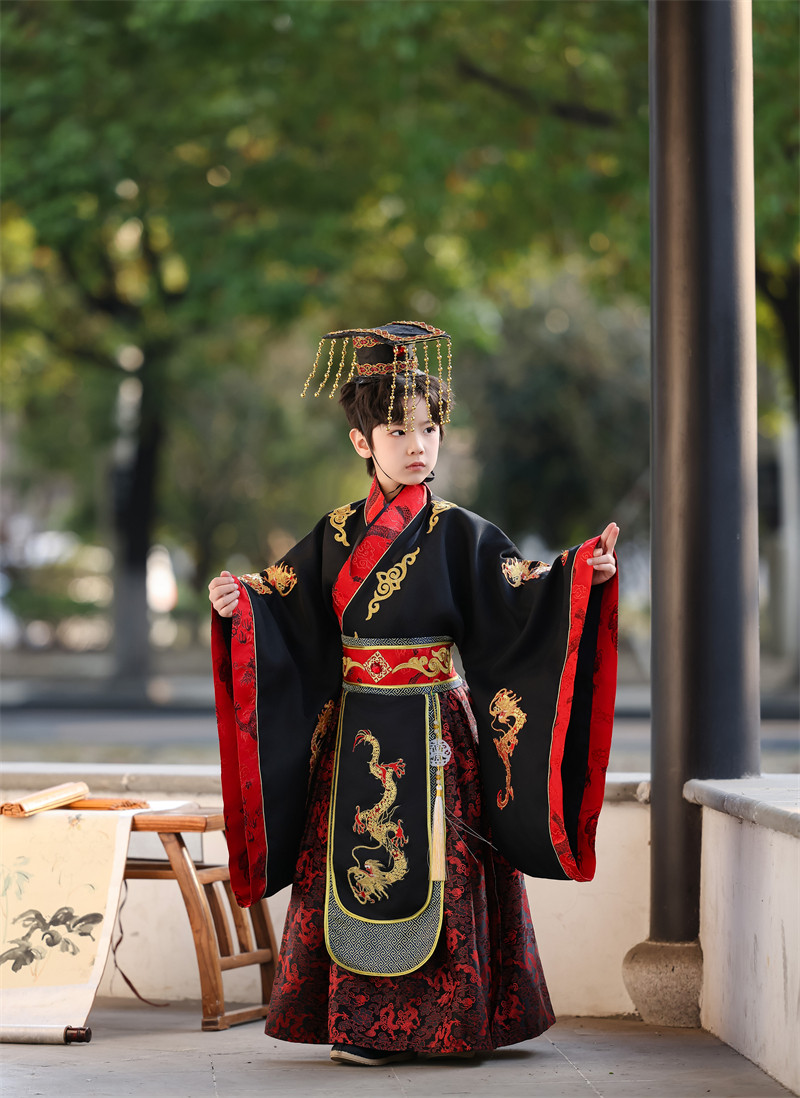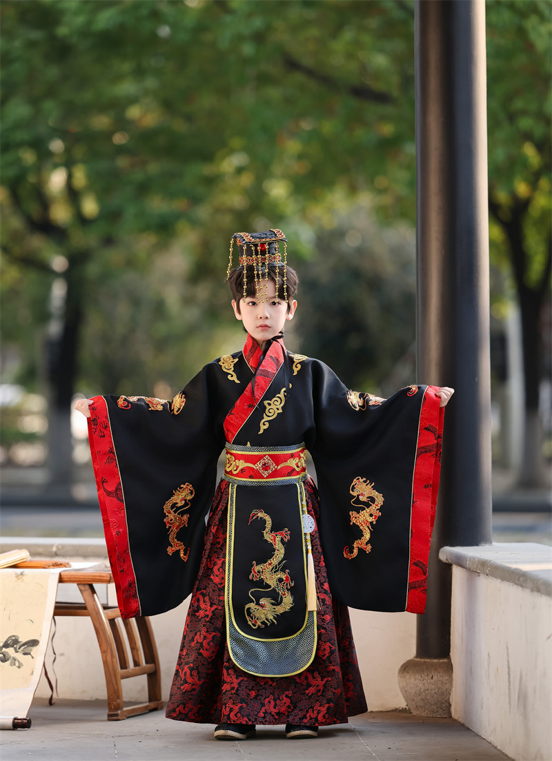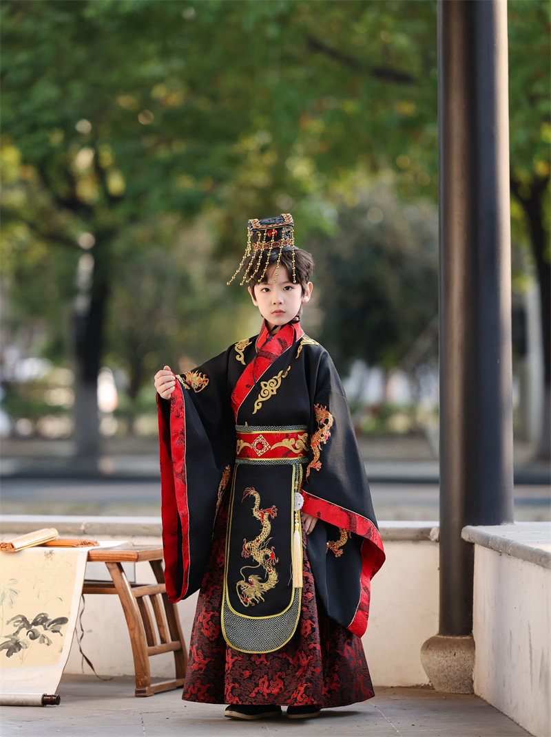儿童古装皇帝龙袍汉服男童天子君王黑色高端秦汉三国演出服春秋款