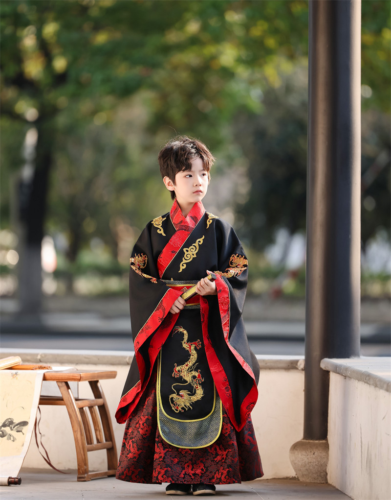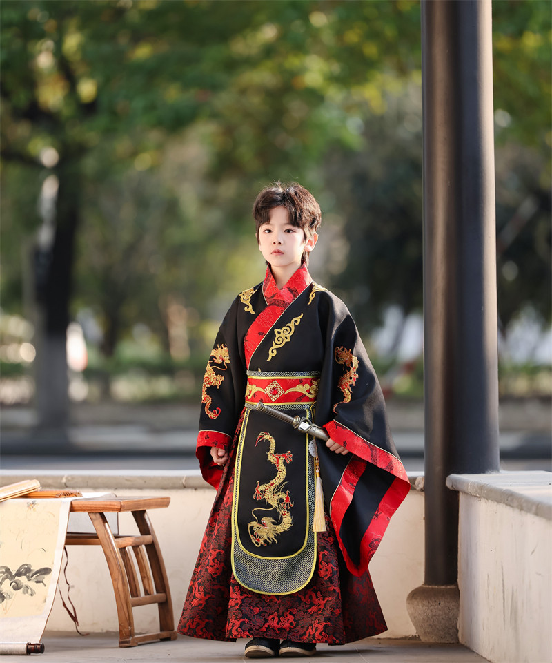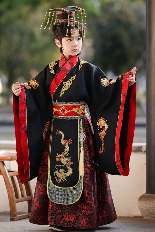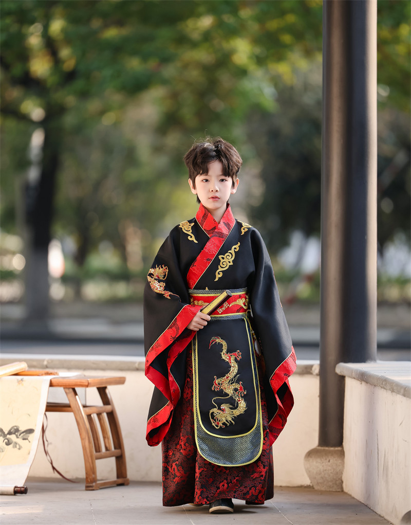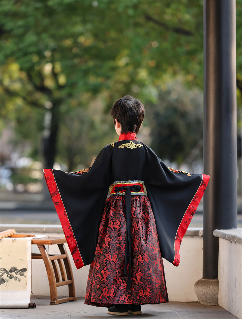 儿童古装皇帝龙袍汉服男童天子君王黑色高端秦汉三国演出服春秋款