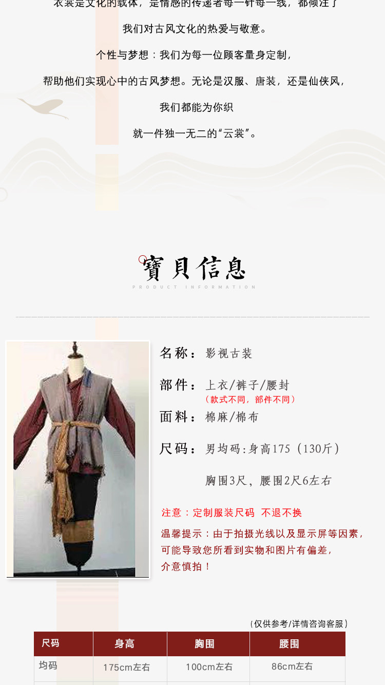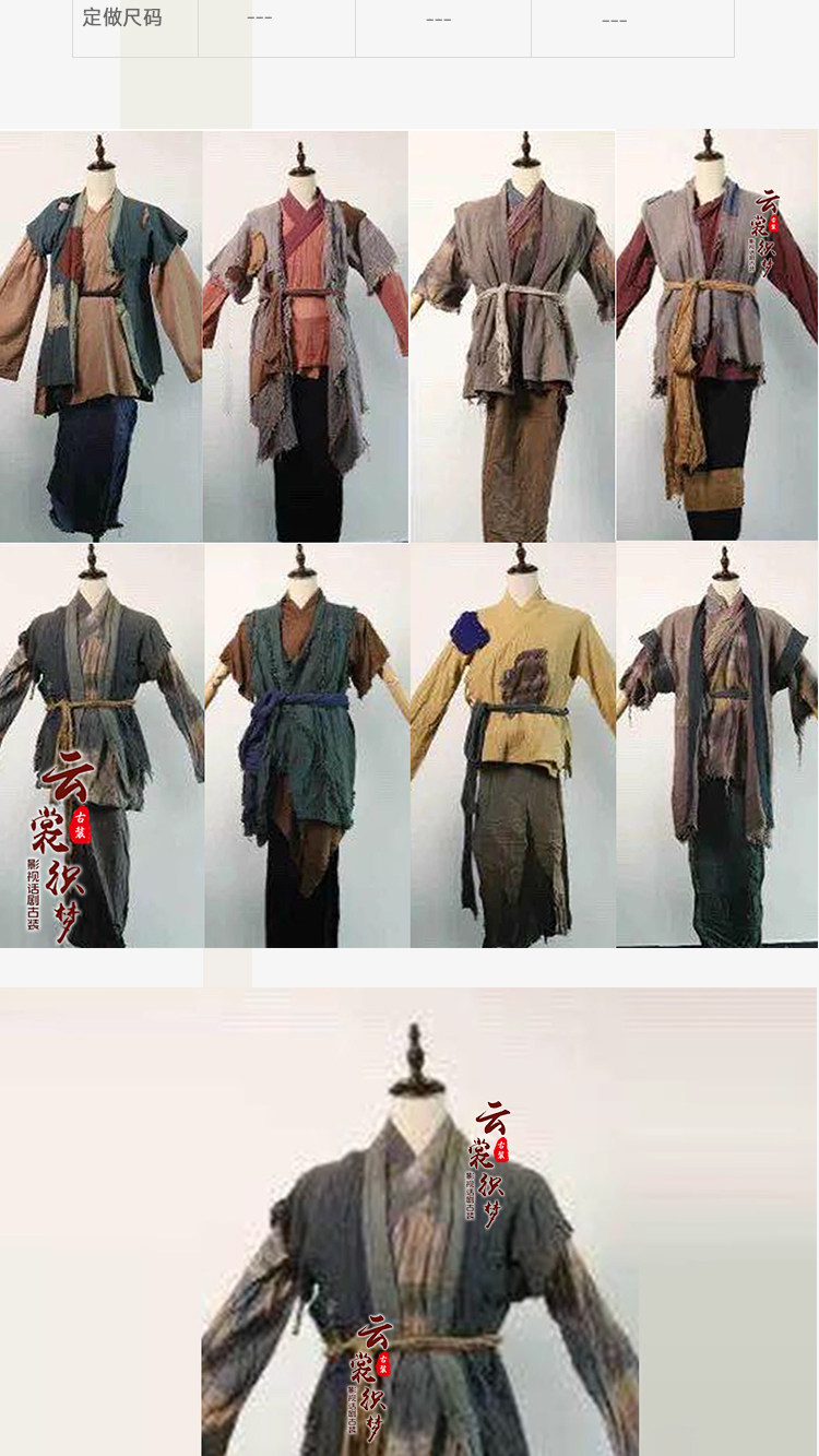 影视古装春秋男汉服宋代百姓农民群演棉麻粗布焦夫破旧乞丐佣人服