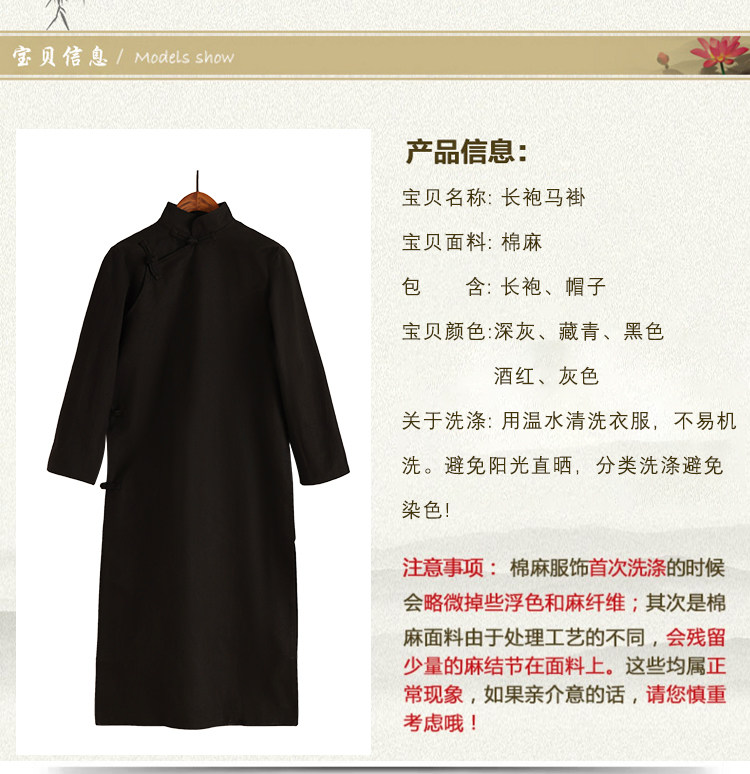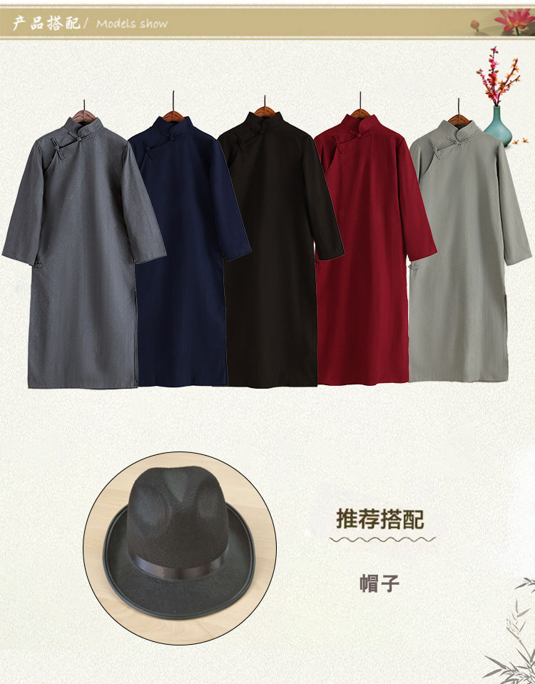 粗布棉麻民国长衫男长袍相声大褂演出服话剧教书先生李大钊大马褂