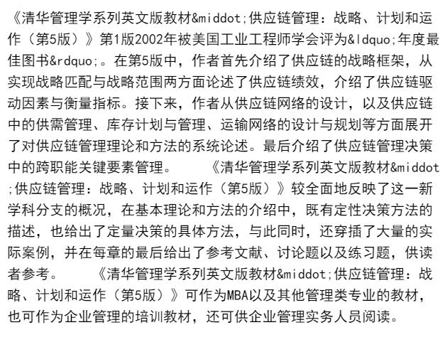 正版供应链管理 战略 计划和运作 第5版 清华大学出版社 库存计划与管理 运输网络的设计与规划MBA教材书籍