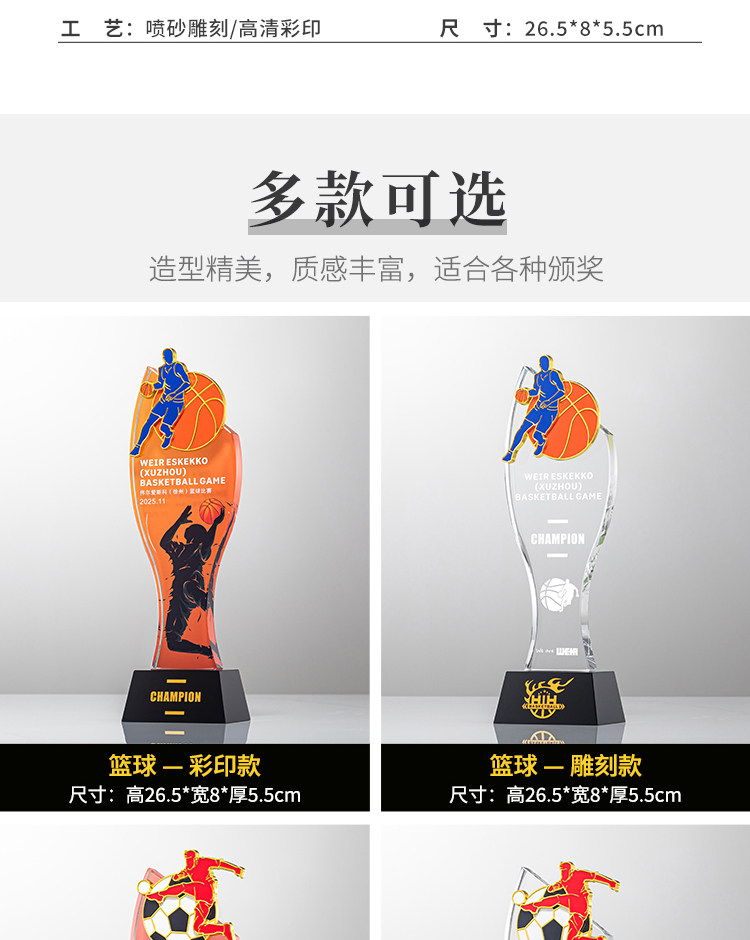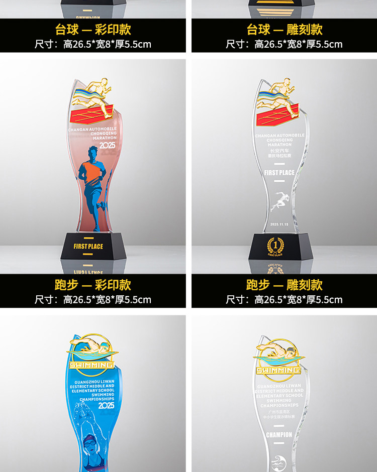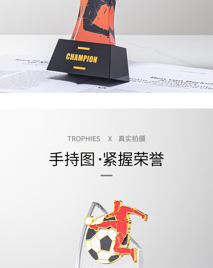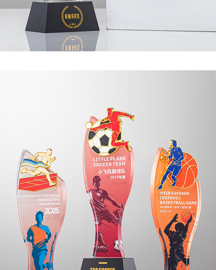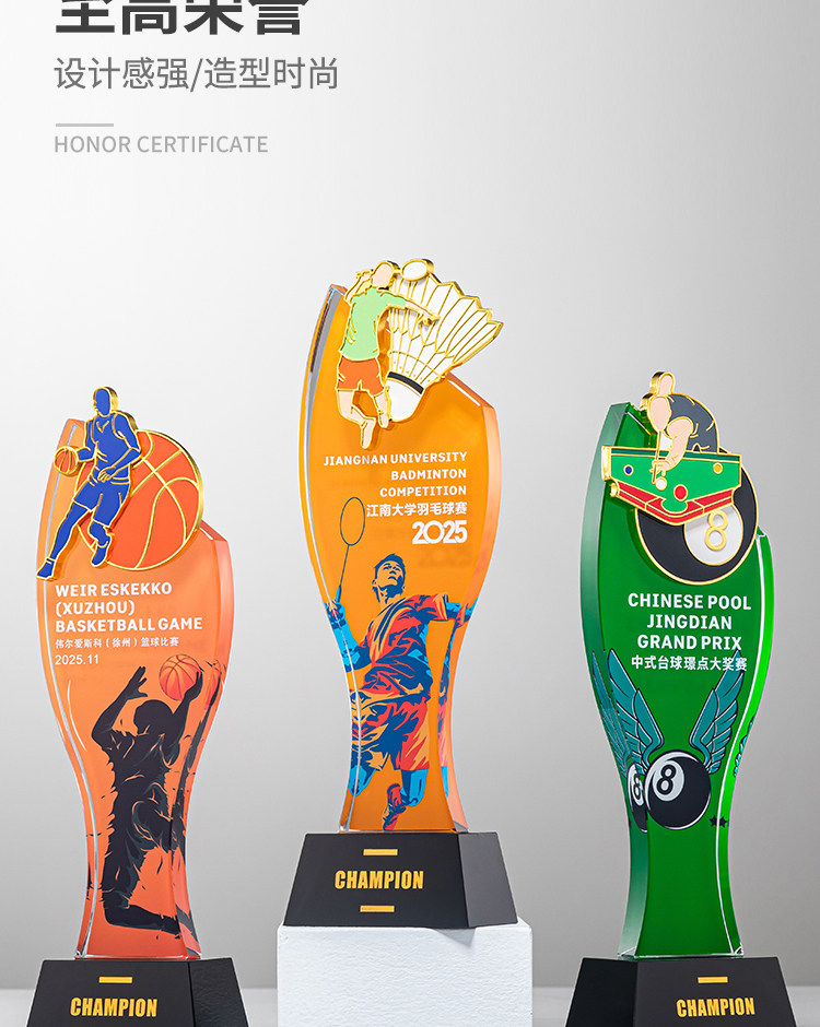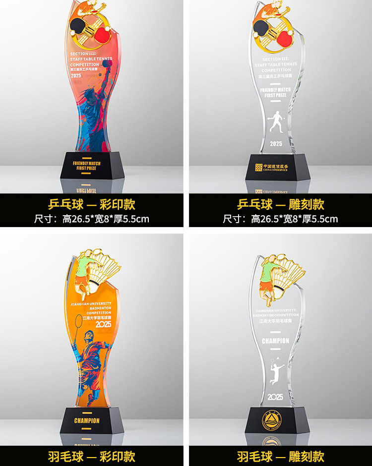 新款水晶奖杯高档大气创意体育运动会台足篮排乒乓羽毛球比赛奖杯
