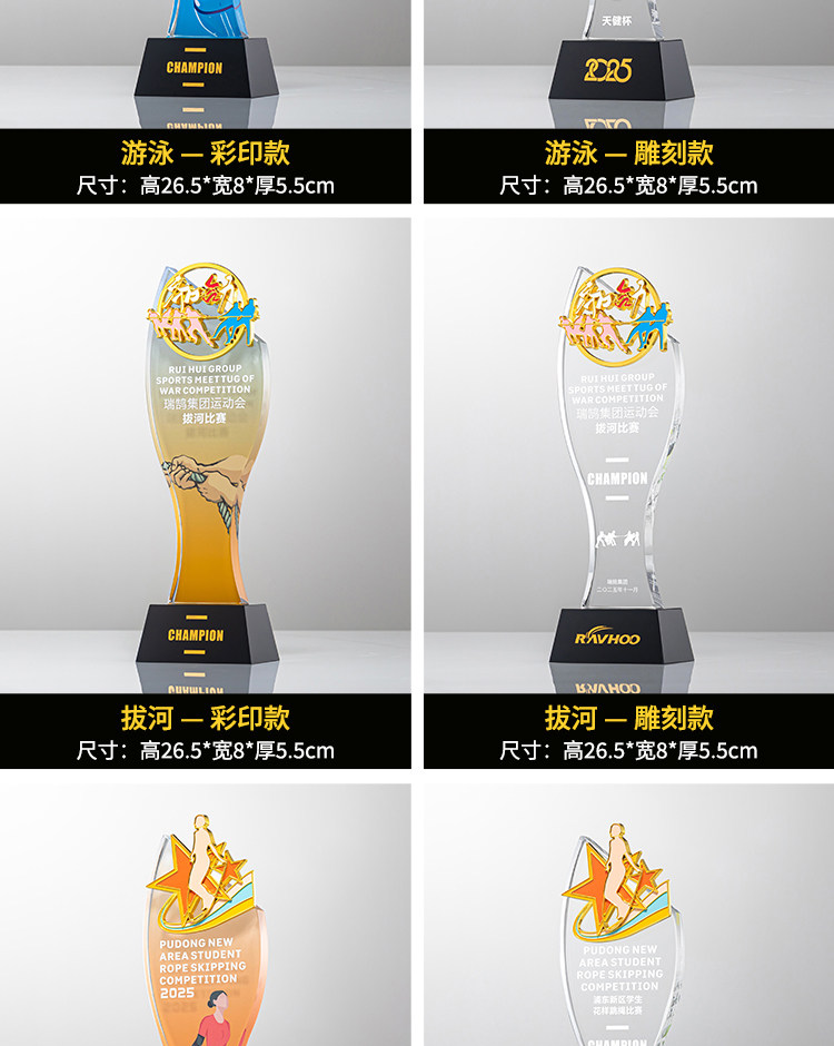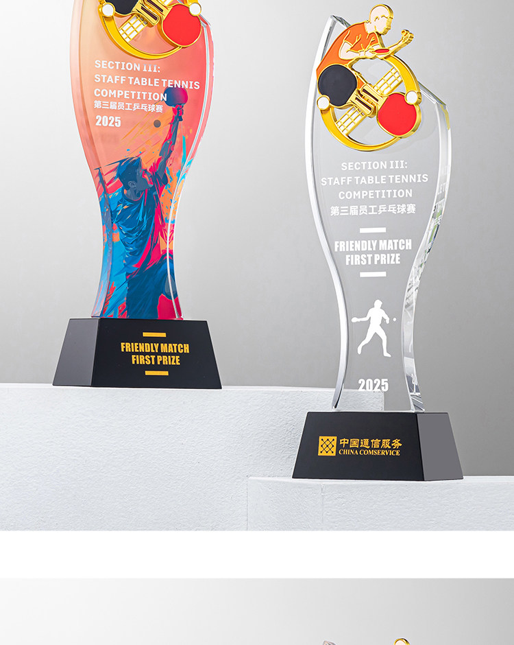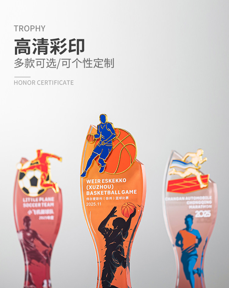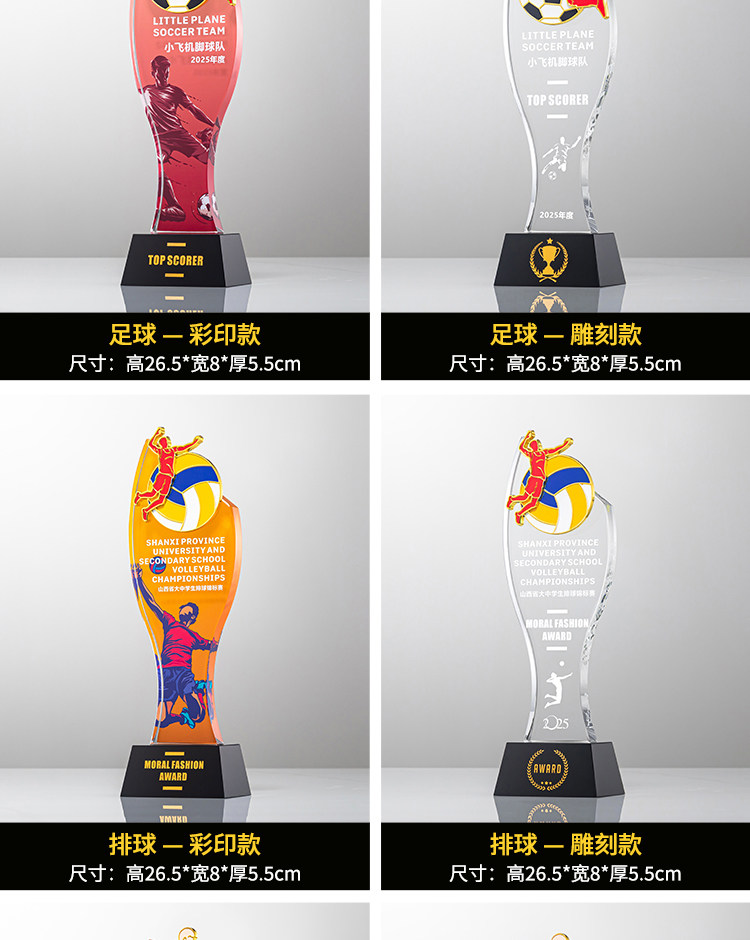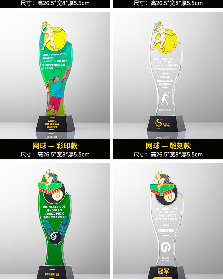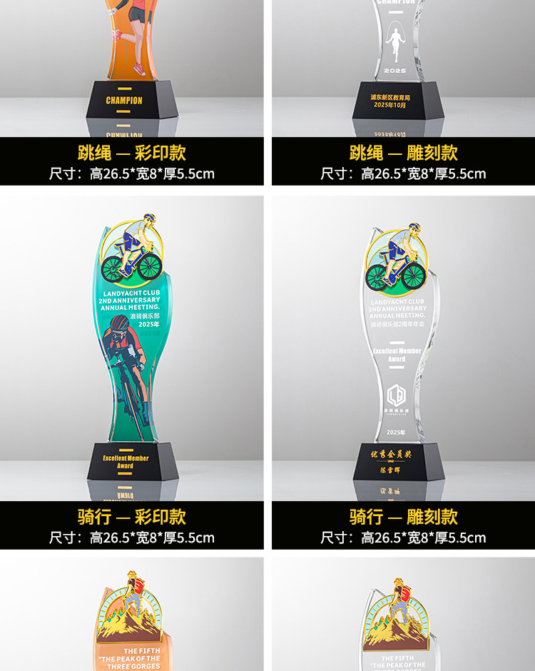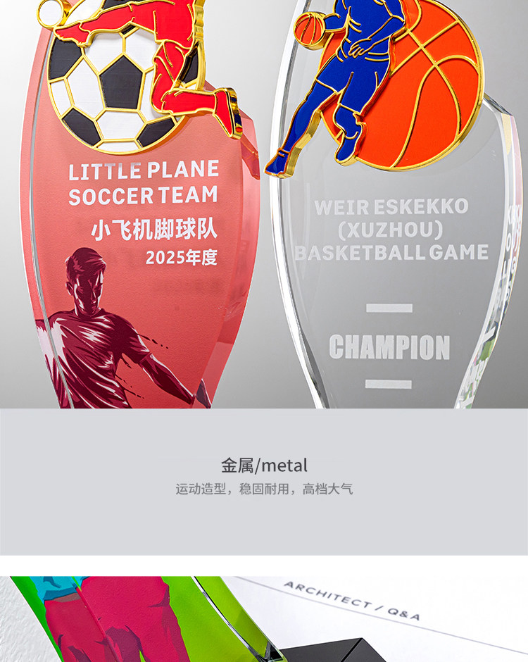 新款水晶奖杯高档大气创意体育运动会台足篮排乒乓羽毛球比赛奖杯