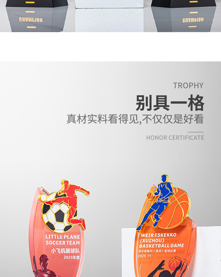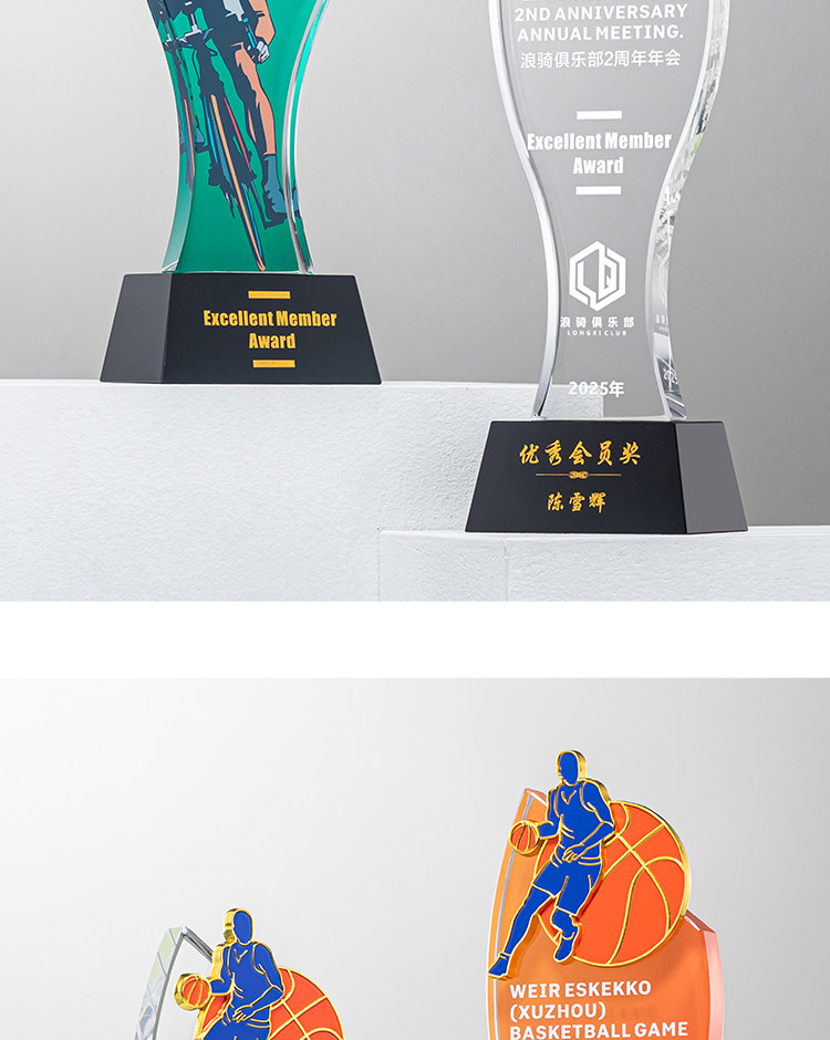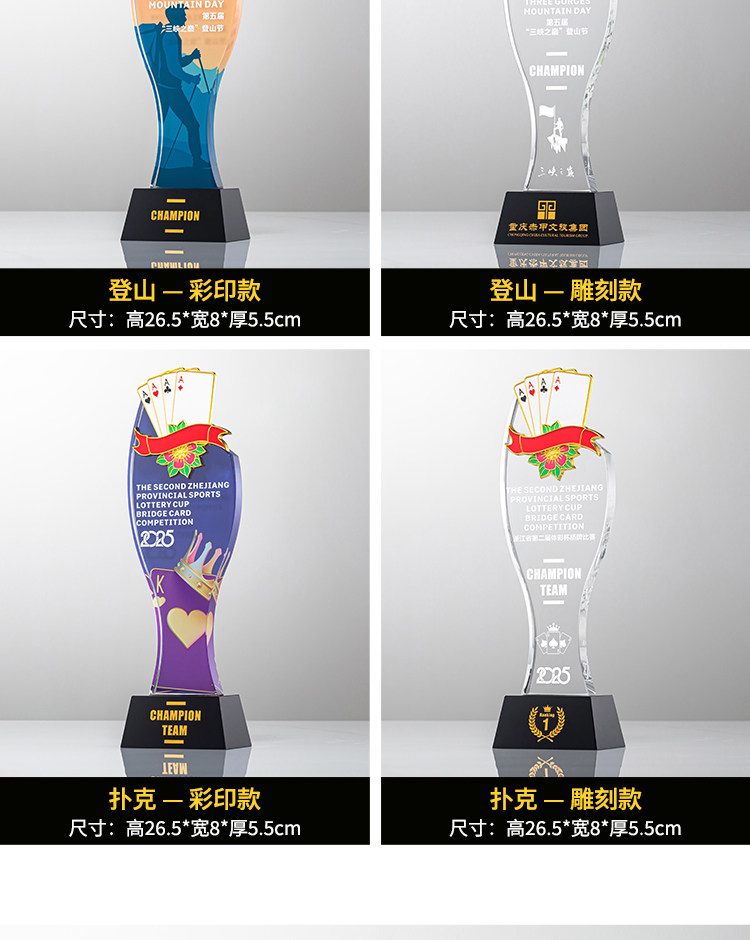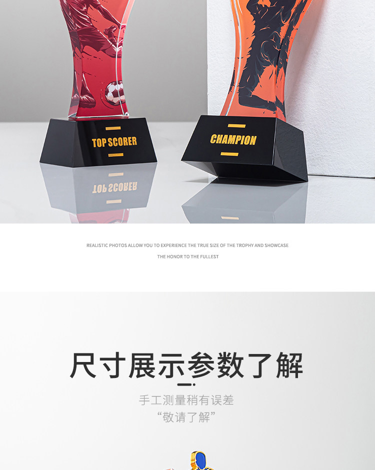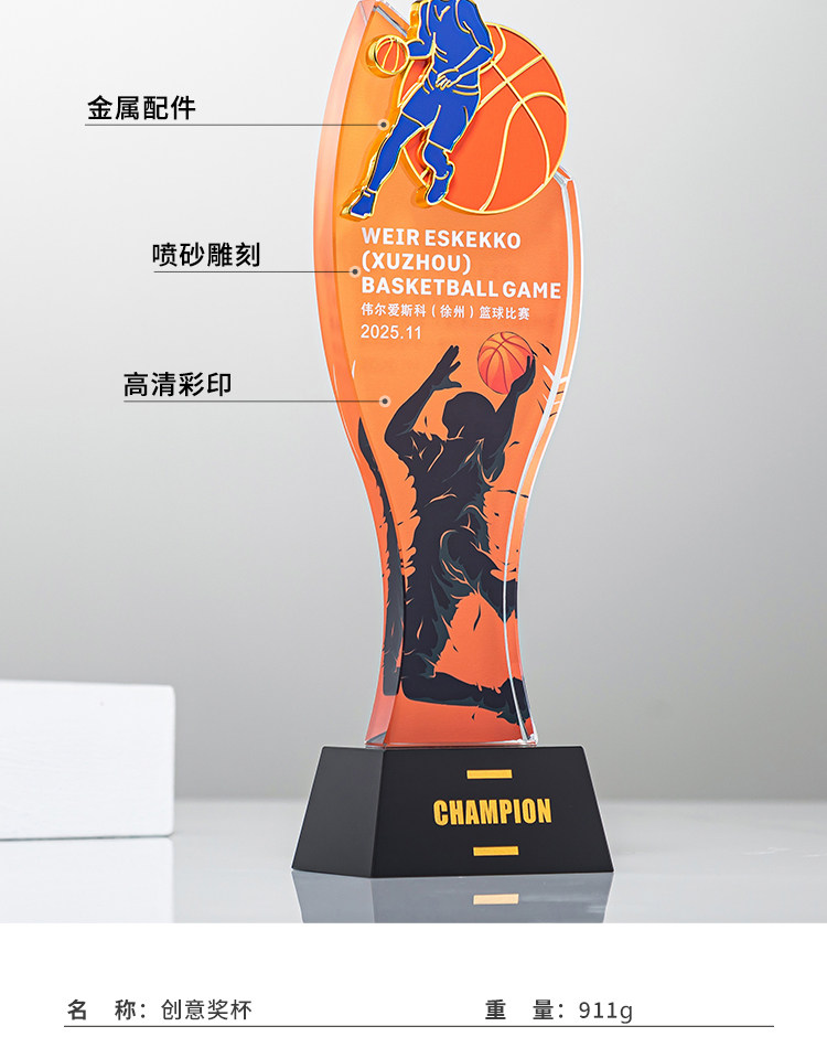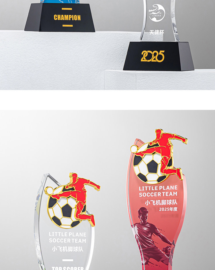 新款水晶奖杯高档大气创意体育运动会台足篮排乒乓羽毛球比赛奖杯
